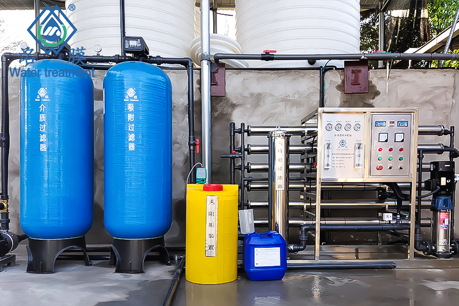 项目地址:原水:自来水处理量:3T/H设备工艺:原水池→多介质过滤→吸附过滤→阻垢剂投加→精密过滤→RO膜→纯水箱处理标准:食品生产