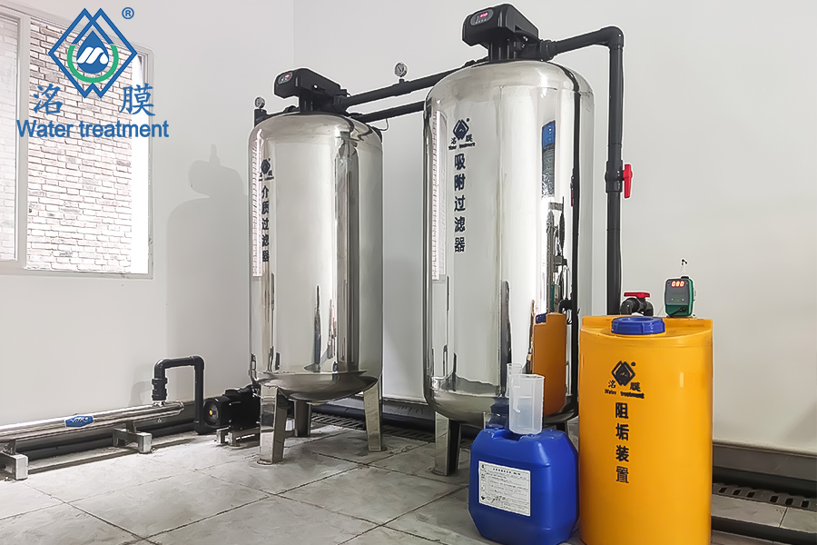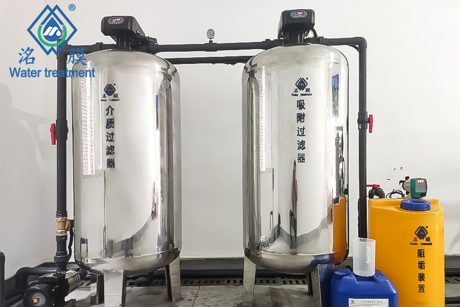 项目地址:设备名称:5T/H纯水反渗透设备设备工艺:介质过滤-吸附过滤-阻垢剂-精密过滤-RO反渗透膜-紫外杀菌灯原水水源:自来水(电导698)处理后用途:日用品生产