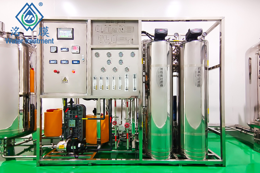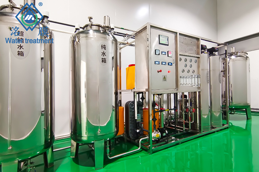 项目名称:腾冲化妆品厂0.5吨双极反渗透加EDI项目地址:设备工艺:原水箱→石英砂→活性炭→精密过滤器→一级反渗透→二级反渗透→纯水箱→EDI机组→超纯水箱→精密过滤器→变频供水用途:实验用水,生产用水