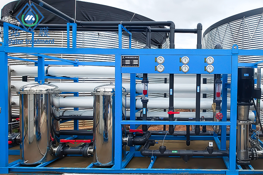 项目地址: 设备名称:反渗透出水产量:35T/H设备工艺:石英砂+活性炭+精密+反渗透水 源: 水库水出水用途:蓝莓施肥灌溉