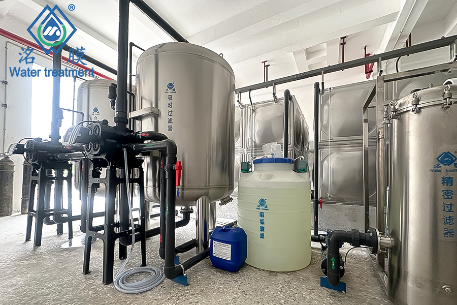 项目地址:广西柳城县六塘镇设备名称:超纯水设备出水产量:10T/H设备工艺:介质过滤→吸附过滤→阻垢剂→精密过滤→一级RO→二级RO→EDI→氮封水箱→抛光树脂原水:河水出水用途:电子级磷加工
